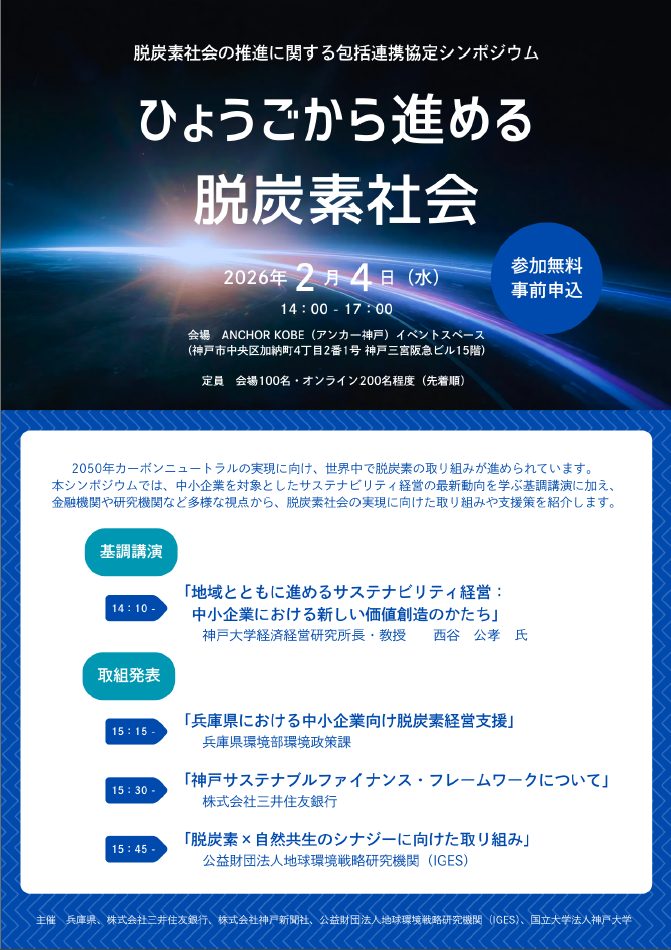 ひょうごから進める脱炭素社会のシンポジウムが開催されます