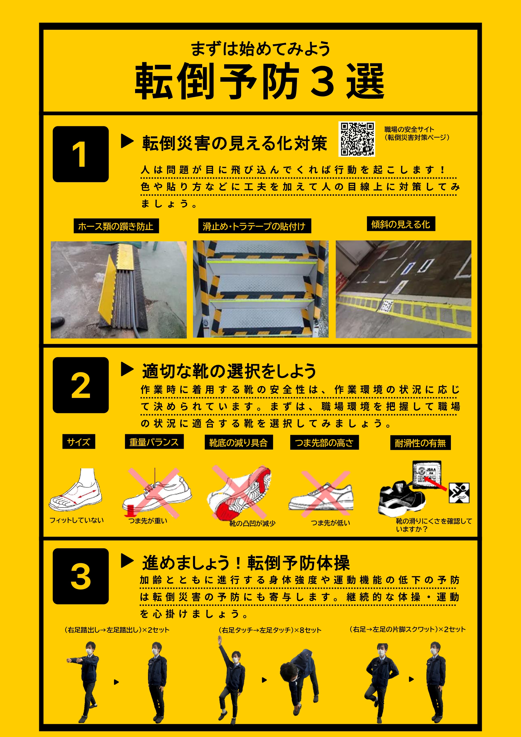 相生署管内(相生市・赤穂市・上郡郡・佐用郡)では、去年度と比較すると、特に転倒災害が急増しております。今後ますます気温が低下していきますと、滑り等による転倒災害がさらに増加することが懸念されます。